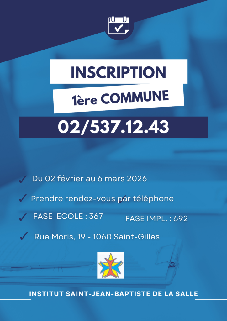 Pour le site Saint Jean-Baptiste de la Salle: Se présenter 19 avenue Moris entre 8h15 et 12h30 (du lundi au vendredi) ou entre 14h00 et 16h00 (mardi, jeudi ou vendredi) ou prendre rendez-vous avec Madame Duval au 02/537.12.43